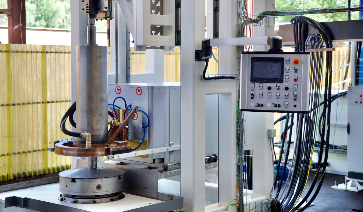 Firma Rajmont měla na starost veškeré obslužné elektroskříně, rozvody, transformátory, ale i vodní okruhy a celé vodní hospodářství pro kalení. RETOS pak vyráběl mechanické části stroje, jako stojan pro pojezd kalicího transformátoru, koník a lunetu pro upnutí a unášení součásti a nosné konstrukce pro vedení hadic a kabelů. Přípravné práce trvaly tři měsíce, výroba a předmontáž pak dalších šest měsíců. Protože stroj měl mít příkon 630 kW, jeho testování muselo probíhat ve dvou fázích. Nejprve v areálu firmy Rajmont, kde mají dostatečný příkon a poté v RETOSu, kde byl stroj během čtyř týdnů sestaven a následně týden testován, nicméně již pouze s třetinovým výkonem.