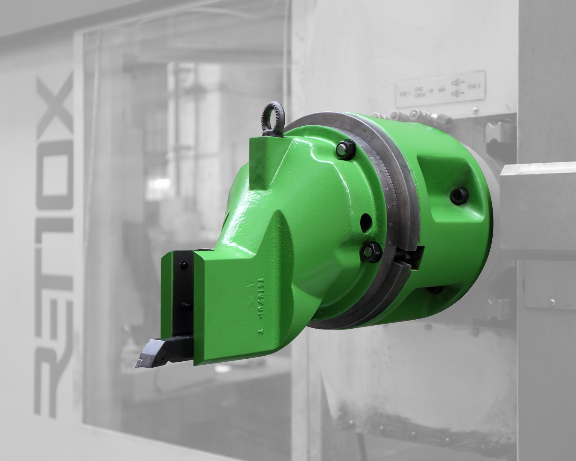 Připevnění nožového držáku na vřeteník (na centrážní průměr pouzdra uložení vřetena) je prováděno ručně pomocí zvedacího zařízení.