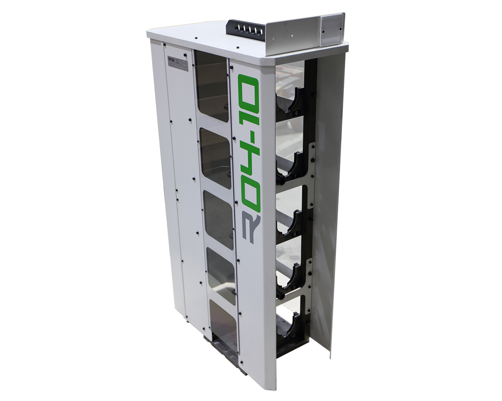 Zásobník je instalován libovolně nejlépe na kraji pracovní plochy stroje tak, aby stroj vřetenem dosáhl do všech pozic pro uložení nástrojů. Po ukotvení se pomocí obrobkové sondy zjistí a zapíše do stroje pozice zásobníku. Dále je zásobník automaticky obsluhován pomocí příkazů TOOL CALL + číslo nástroje. Stroj je opatřen čidlem kontroly přítomnosti zásobníku, které snímá odrazovou plochu v horní části zakladače. V případě odstranění nebo přemístění zásobníku bude výměna blokována.